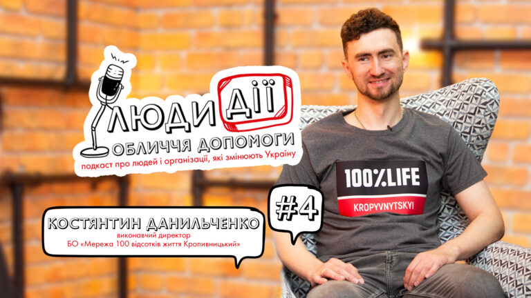 У новому епізоді подкасту «#ЛюдиДії: Обличчя допомоги» — історія Благодійної організації БО «100 відсотків життя. Кропивницький та її виконавчого директора Костянтина Данильченка. Історія організації почалася